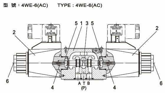 • 電磁鐵(2)的力量經(jīng)過推桿(5)作用在控制閥芯(3)上,將其由靜止推向所需位置。這就使油液從P至A,B至T,P至B或A至 T自由流動。