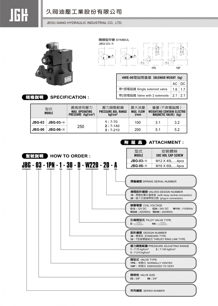 JGH先導(dǎo)式溢流閥常規(guī)型號參考:JBG-03-1NP-1 , JBG-03-1NP-2 , JBG-03-1NP-3 , JBG-03-1PN-1 , JBG-03-1PN-2 , JBG-03-1PN-3 , JBG-06-1NP-1 , JBG-06-1NP-2 , JBG-06-1NP-3 , JBG-06-1PN-1 , JBG-06-1PN-2 , JBG-06-1PN-3