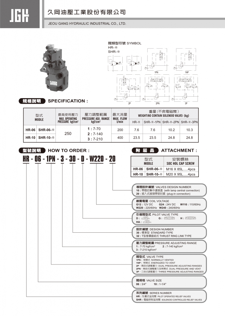 JGH久岡壓力控制閥 HR,SHR系列先導(dǎo)式溢流閥、電磁控制溢流閥