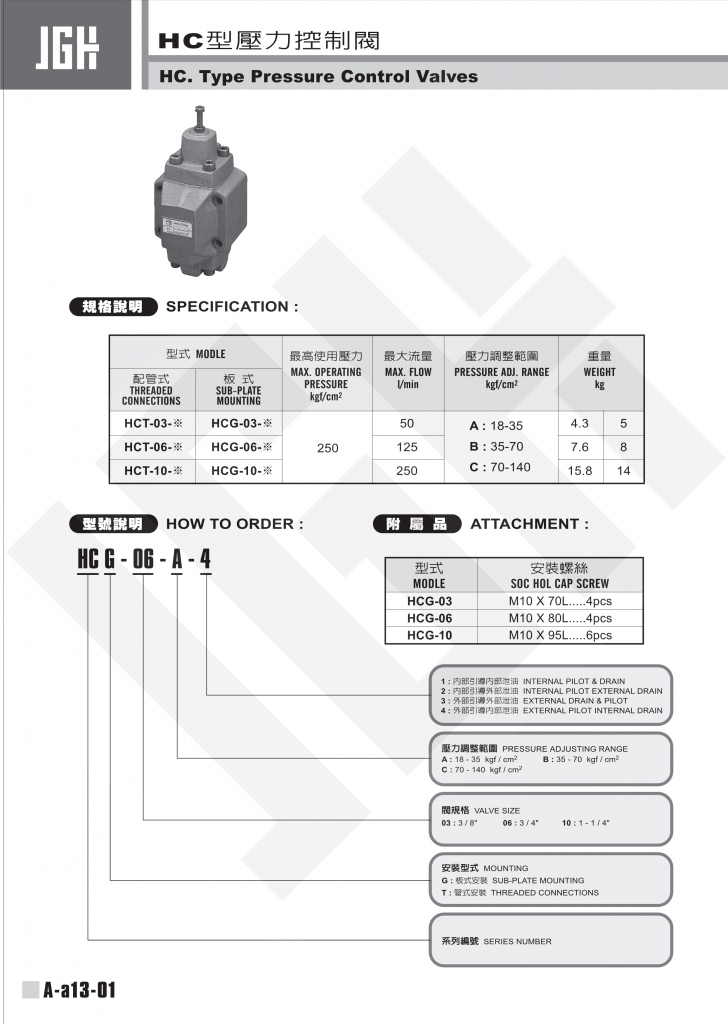 JGH久岡壓力控制閥 HCG,HCT系列HC型壓力控制閥