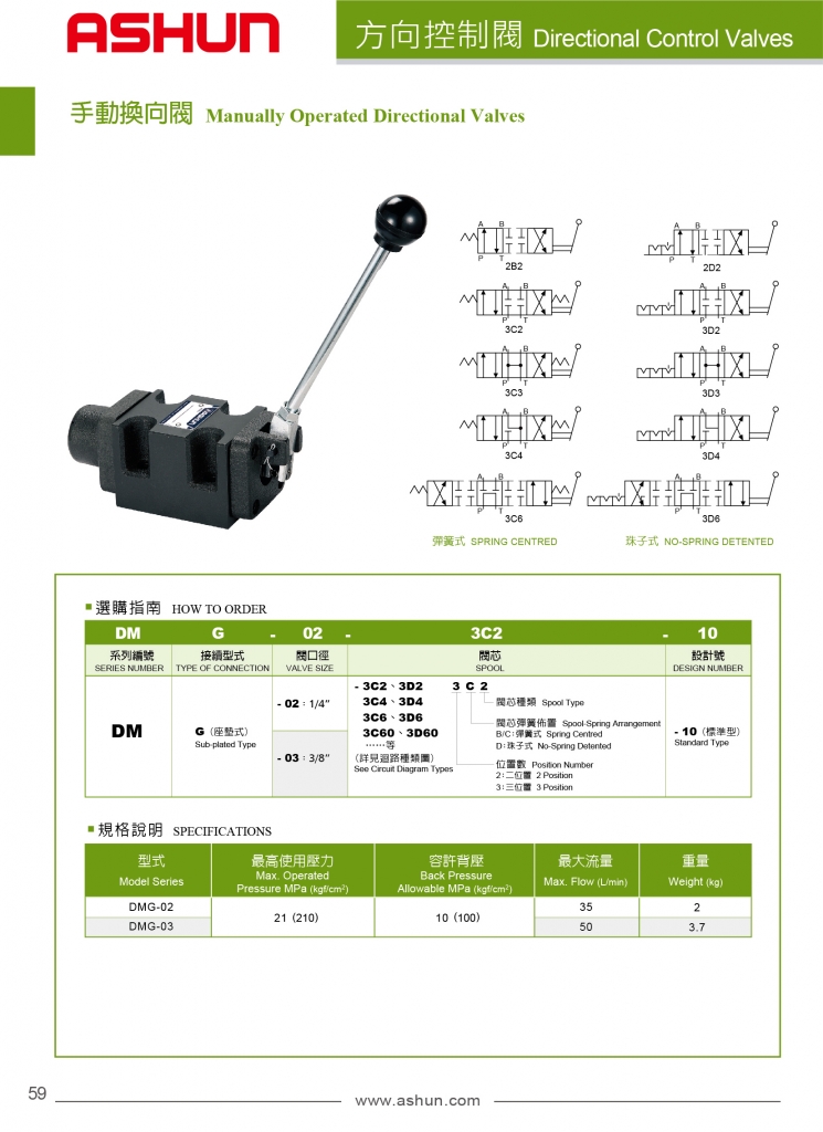 ASHUN油順?lè)较蚩刂崎y DMG系列手動(dòng)換向閥