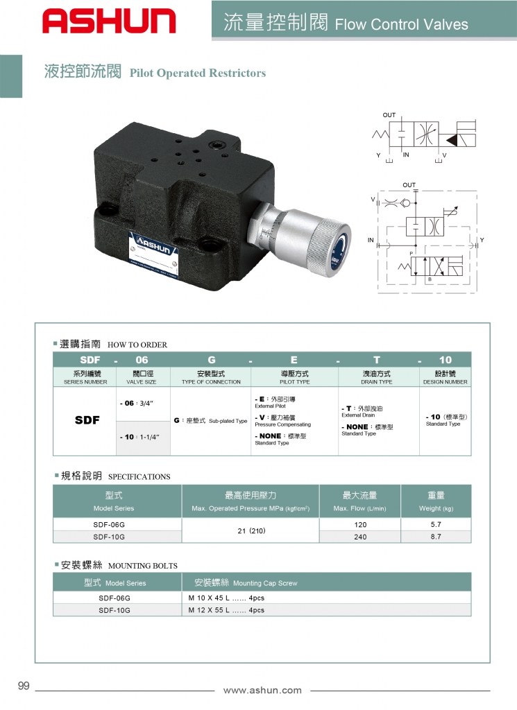ASHUN油順流量控制閥 SDF系列液控節(jié)流閥
