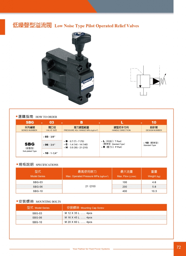 ASHUN油順壓力控制閥 SBG系列低噪音型溢流閥