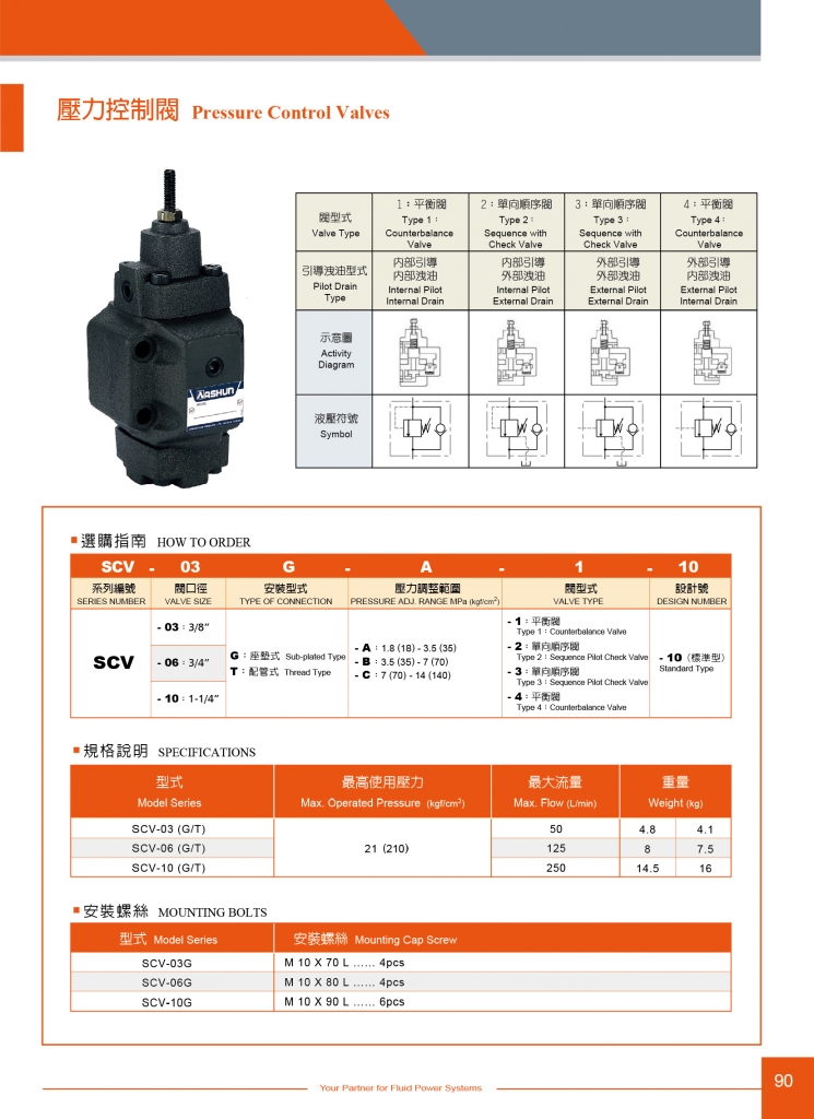 ASHUN油順壓力控制閥 SCV系列壓力控制閥