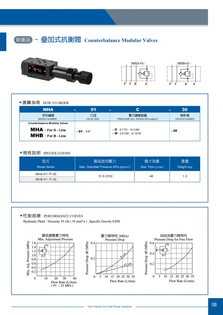 ASHUN疊加式抗衡閥常規(guī)型號參考:MHA-01-C-30 , MHA-01-H-30 , MHB-01-C-30 , MHB-01-H-30