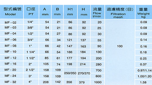 CLC濾油網(wǎng)部分常規(guī)型號(hào)參考:MF-02 , MF-03 , MF-04 , MF-06 , MF-08 , MF-10 , MF-12 , MF-16 , MF-20 , MF-24 , MF-32