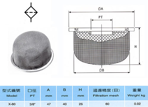 CLC濾油網(wǎng)部分常規(guī)型號(hào)參考:X-80