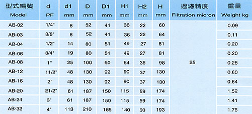 CLC空氣濾清器部分常規(guī)型號參考:AB-12 , AB-16 , AB-20 , AB-24 , AB-32 , AB-08 , AB-06 , AB-04 , AB-03 , AB-02