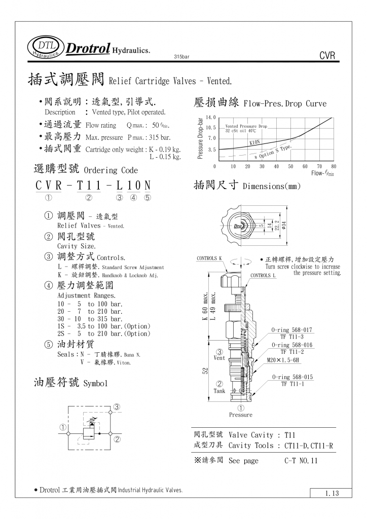 DTL插式調(diào)壓閥部分常規(guī)型號(hào)參考:CVR-T11-K10N , CVR-T11-K10V , CVR-T11-K1SN , CVR-T11-K1SV , CVR-T11-K20N , CVR-T11-K20V , CVR-T11-K2SN , CVR-T11-K2SV , CVR-T11-K30N , CVR-T11-K30V , CVR-T11-L10N , CVR-T11-L10V , CVR-T11-L1SN , CVR-T11-L1SV , CVR-T11-L20N , CVR-T11-L20V , CVR-T11-L2SN , CVR-T11-L2SV , CVR-T11-L30N , CVR-T11-L30V ,