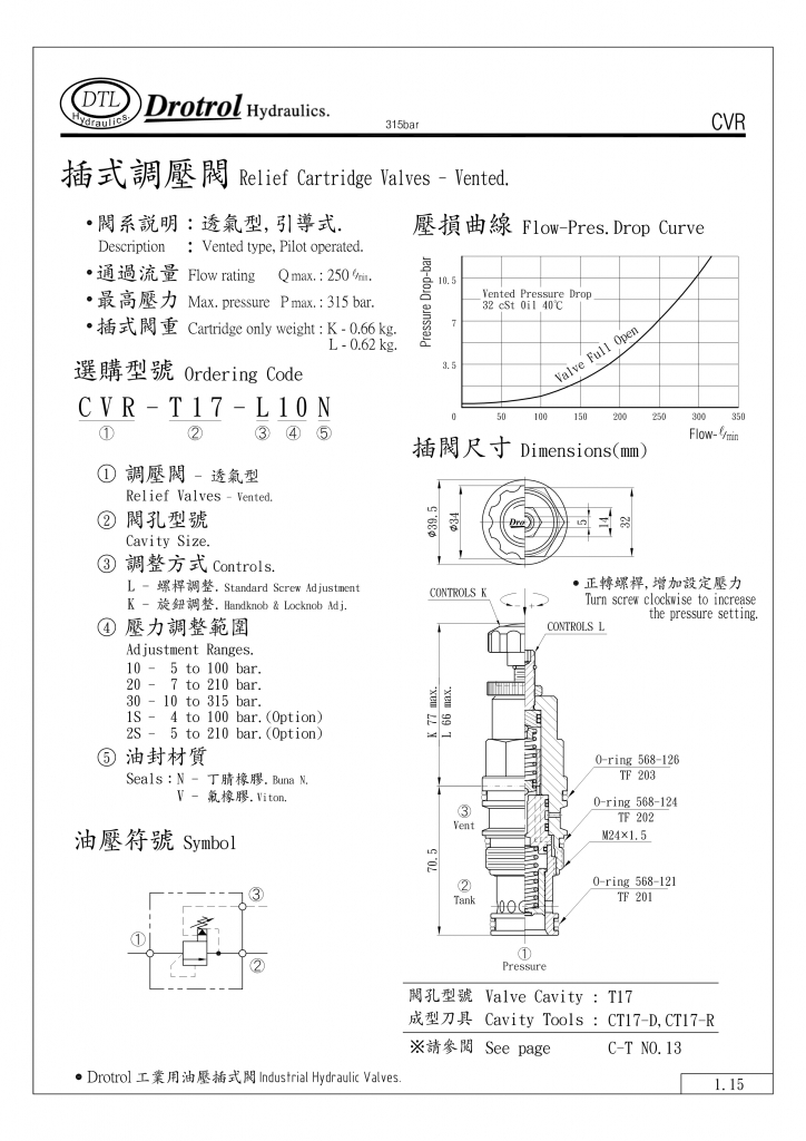 DTL插式調(diào)壓閥部分常規(guī)型號(hào)參考:CVR-T17-K10N , CVR-T17-K10V , CVR-T17-K1SN , CVR-T17-K1SV , CVR-T17-K20N , CVR-T17-K20V , CVR-T17-K2SN , CVR-T17-K2SV , CVR-T17-K30N , CVR-T17-K30V , CVR-T17-L10N , CVR-T17-L10V , CVR-T17-L1SN , CVR-T17-L1SV , CVR-T17-L20N , CVR-T17-L20V , CVR-T17-L2SN , CVR-T17-L2SV , CVR-T17-L30N , CVR-T17-L30V ,