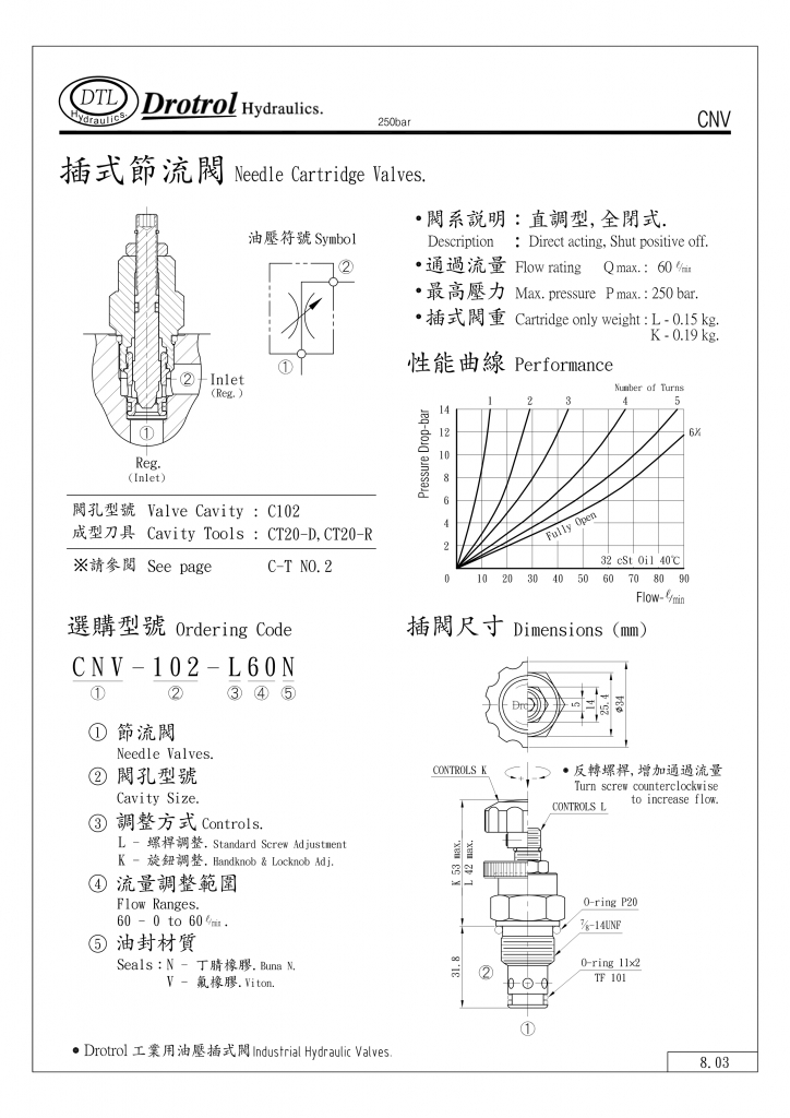 DTL插式節(jié)流閥部分常規(guī)型號(hào)參考:CNV-082-K30N , CNV-082-K30V , CNV-082-L30N , CNV-082-L30V ,