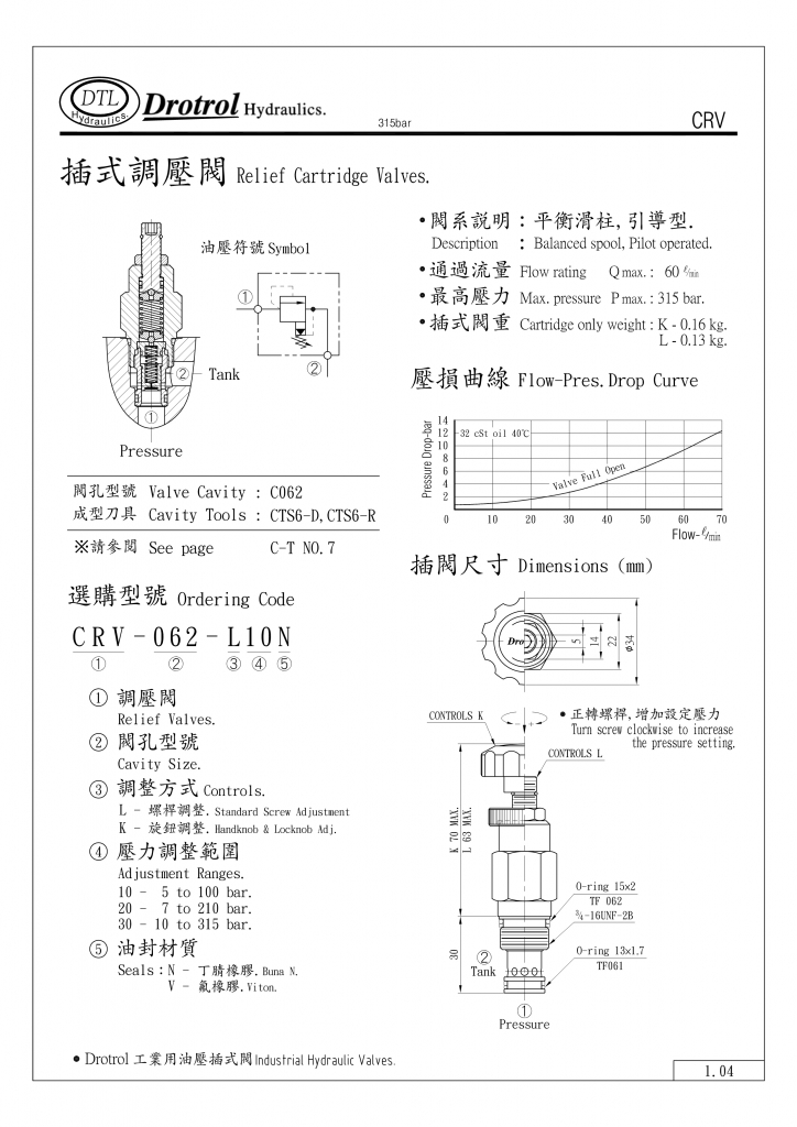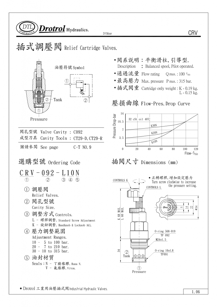 DTL插式調(diào)壓閥部分常規(guī)型號(hào)參考:CRV-092-K10N , CRV-092-K10V , CRV-092-K20N , CRV-092-K20V , CRV-092-K30N , CRV-092-K30V , CRV-092-L10N , CRV-092-L10V , CRV-092-L20N , CRV-092-L20V , CRV-092-L30N , CRV-092-L30V ,