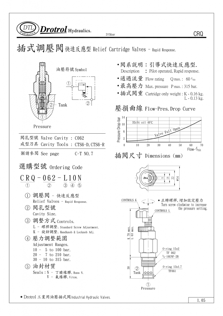 DTL插式調(diào)壓閥部分常規(guī)型號(hào)參考:CRQ-062-K10N , CRQ-062-K10V , CRQ-062-K20N , CRQ-062-K20V , CRQ-062-K30N , CRQ-062-K30V , CRQ-062-L10N , CRQ-062-L10V , CRQ-062-L20N , CRQ-062-L20V , CRQ-062-L30N , CRQ-062-L30V ,