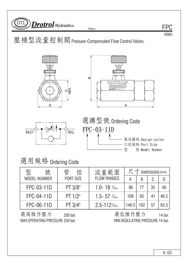 DTL壓補(bǔ)型流量控制閥部分常規(guī)型號(hào)參考:FPC-03-11D , FPC-04-11D , FPC-06-11D