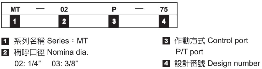 MT-02P, 02T 可稱為節(jié)流閥,也可稱為調(diào)速閥. 用來控制執(zhí)行器的速度,得以調(diào)節(jié)流量的功能. 液壓油通過節(jié)流閥時, 只要節(jié)流閥出入口壓差有變化,它通過的流量 就會起變化. 特性 順時鐘方向轉(zhuǎn)的話,流量減少;逆時鐘方向轉(zhuǎn)的話,流量增加。 由於是活塞型式,油流量無法完全關(guān)閉。 型式號碼 最大壓力 (KG/CM2) 最大流量 (L/MIN) MT-02 210 35 MT-03 70