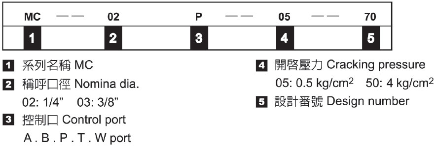 MC也可稱為止回閥,單向閥或背壓閥.它的油壓控制,有開啟和關(guān)閉的功能,可防止流體逆流