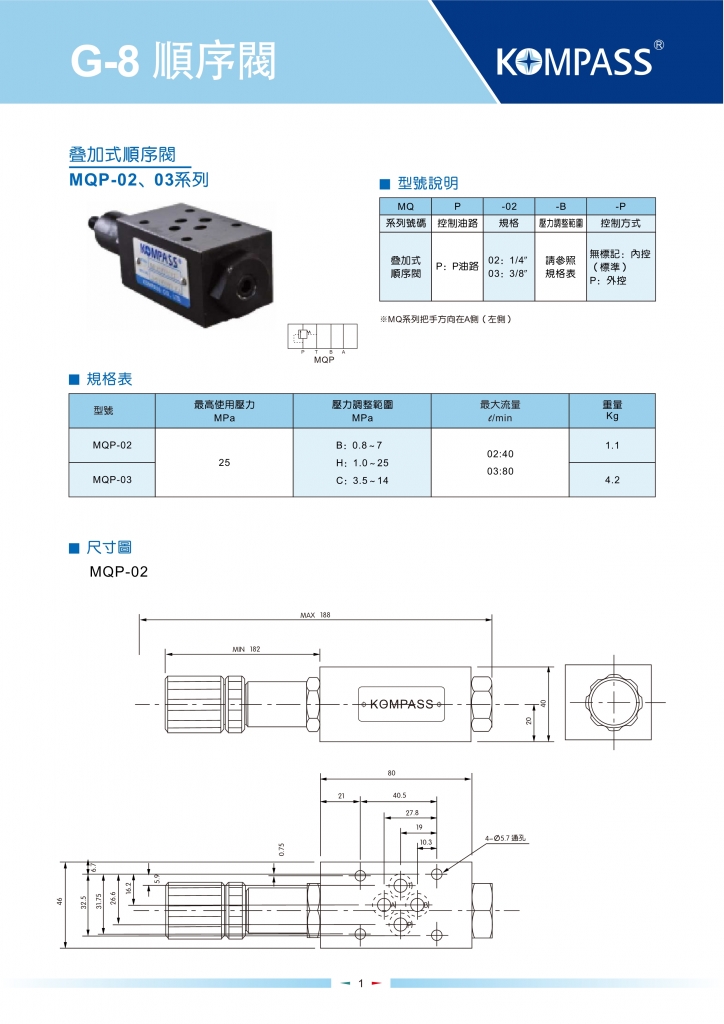 KOMPASS康百世疊加閥 MQP-02,03系列疊加式順序閥