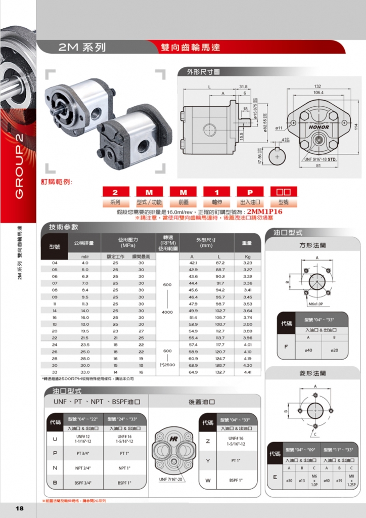 HONOR鈺盟齒輪泵 2M系列雙向齒輪馬達(dá)