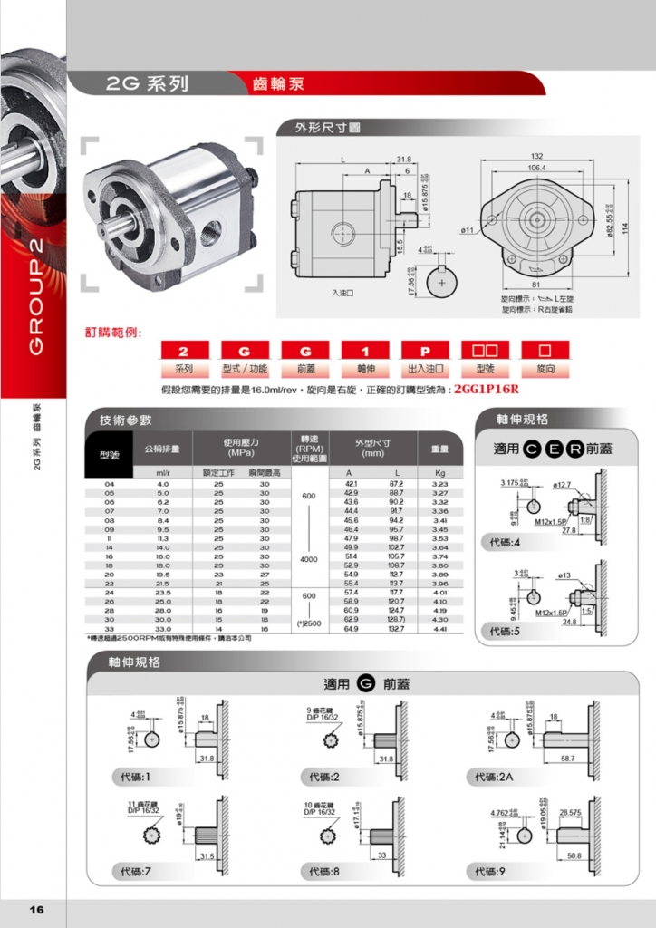 HONOR鈺盟齒輪泵 2G系列高壓齒輪泵