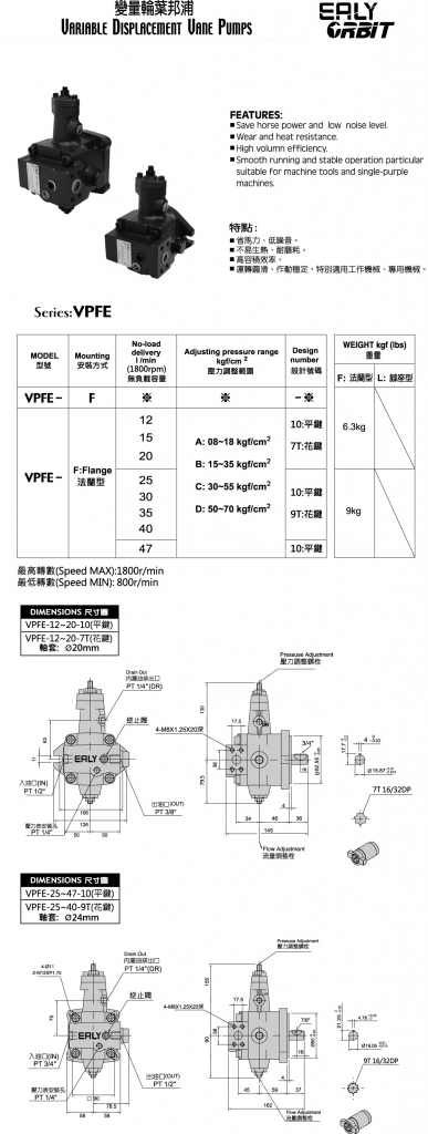 EALY弋力葉片泵 變量型輪葉泵 VPFE系列低壓變量葉片泵