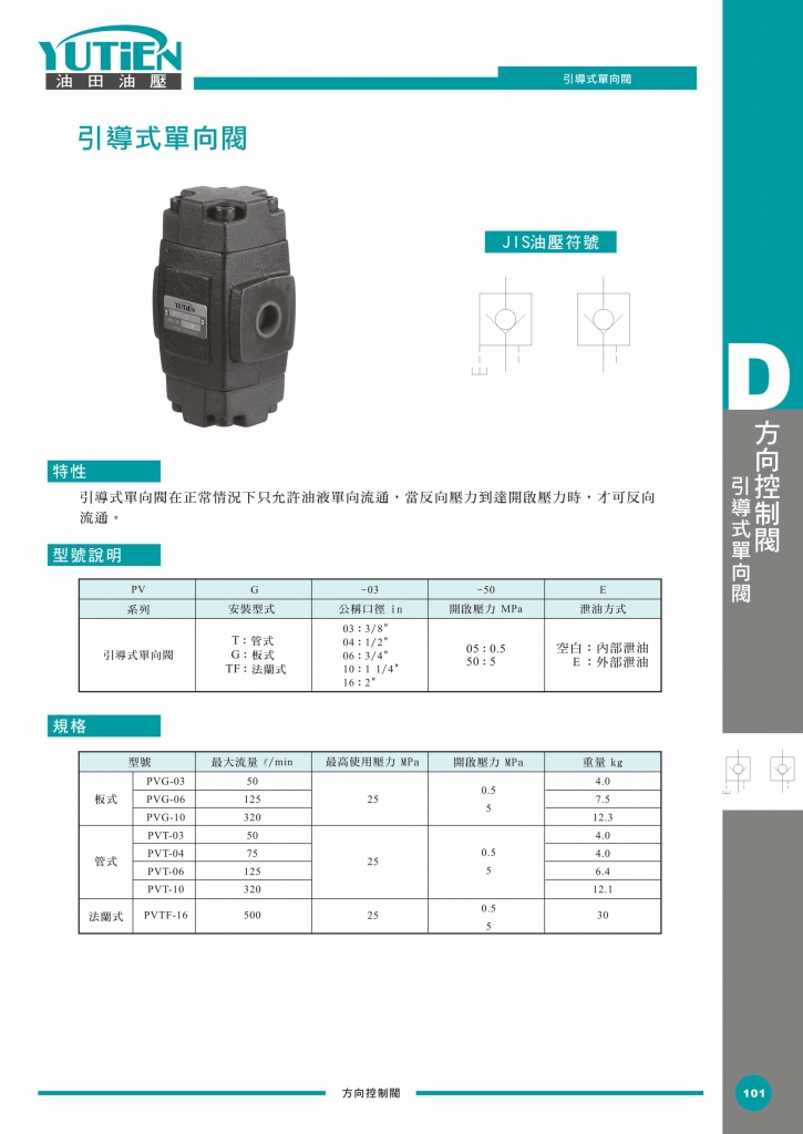 YUTIEN油田方向控制閥 PV系列引導(dǎo)式單向閥