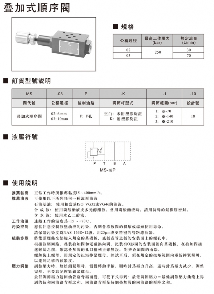 NORTHMAN北部精機疊加閥 MS-02,03系列疊加式順序閥