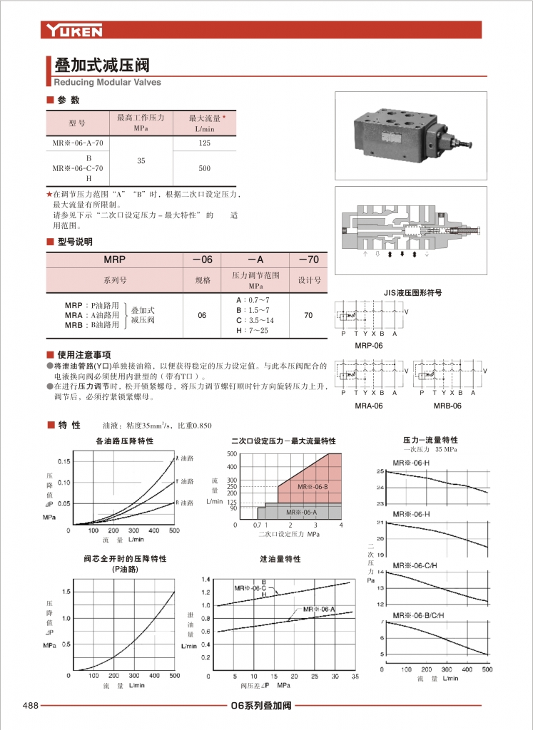 YUKEN油研疊加閥 MRP,MRA,MRB-06系列疊加式減壓閥
