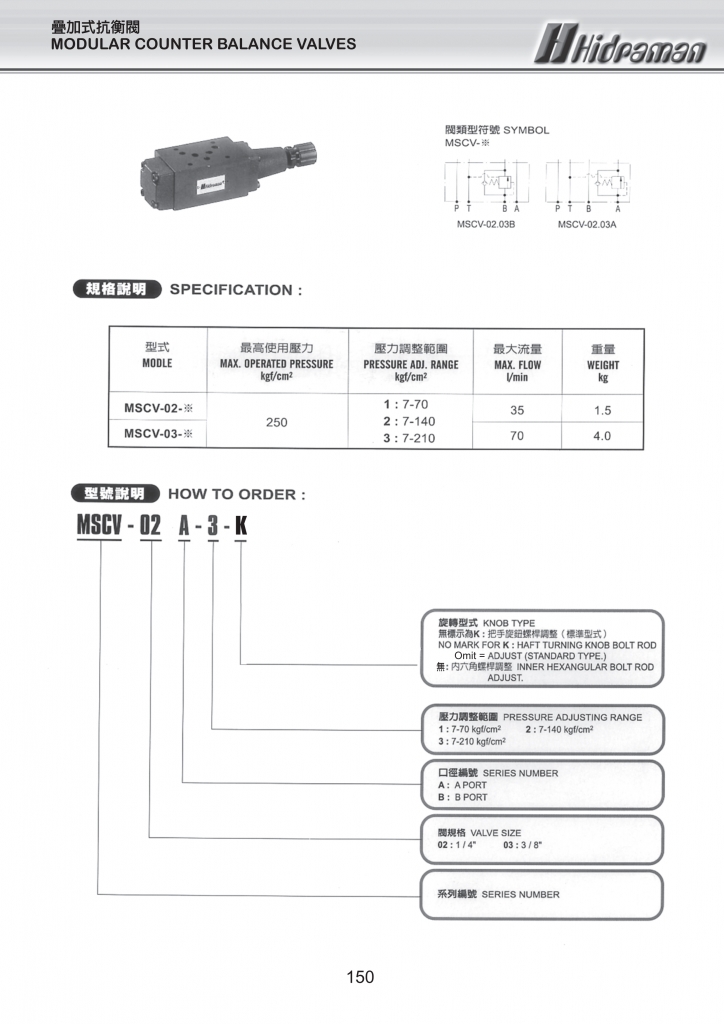 HIDRAMAN海德門(mén)疊加閥 MSCV-02,03系列疊加式抗衡閥