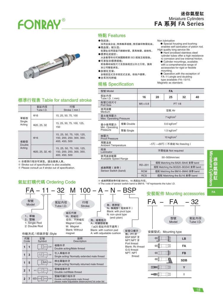| FA?不銹鋼汽缸系列 | 16 20 25 32 40 |