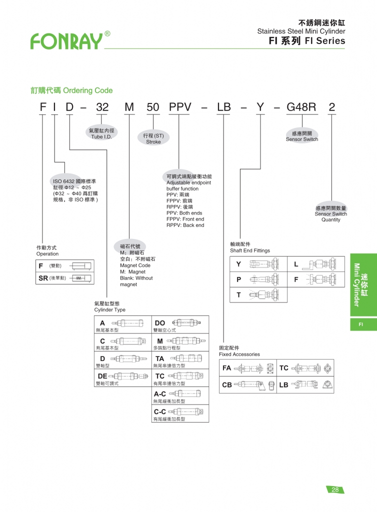 | FI?不銹鋼汽缸系列 | 12 16 20 25 32 40 |