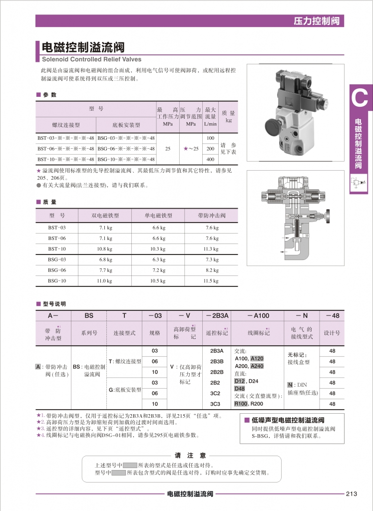 YUKEN油研壓力控制閥 BST,BSG-03,06,10系列電磁控制溢流閥