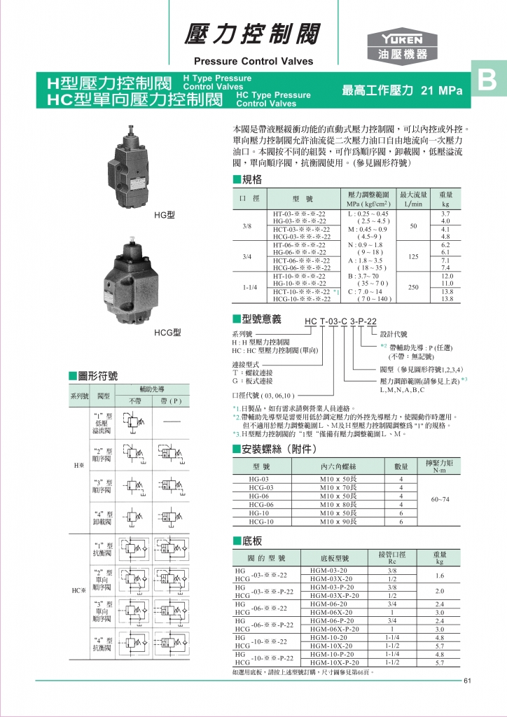 YUKEN壓力控制閥 H型壓力控制閥部分常規(guī)型號參考:HG-03-A , HG-03-B , HG-03-C , HG-03-L , HG-03-M , HG-03-N , HG-06-A , HG-06-B , HG-06-C , HG-06-L , HG-06-M , HG-06-N , HG-10-A , HG-10-B , HG-10-C , HG-10-L , HG-10-M , HG-10-N , HT-03-A , HT-03-B , HT-03-C , HT-03-L , HT-03-M , HT-03-N , HT-06-A , HT-06-B , HT-06-C , HT-06-L , HT-06-M , HT-06-N , HT-10-A , HT-10-B , HT-10-C , HT-10-L , HT-10-M , HT-10-N ,