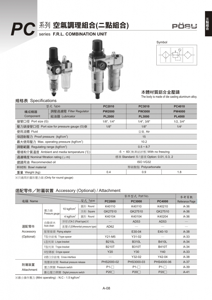 ※ 最小操作壓力: N.C-1.5 kgf/cm2