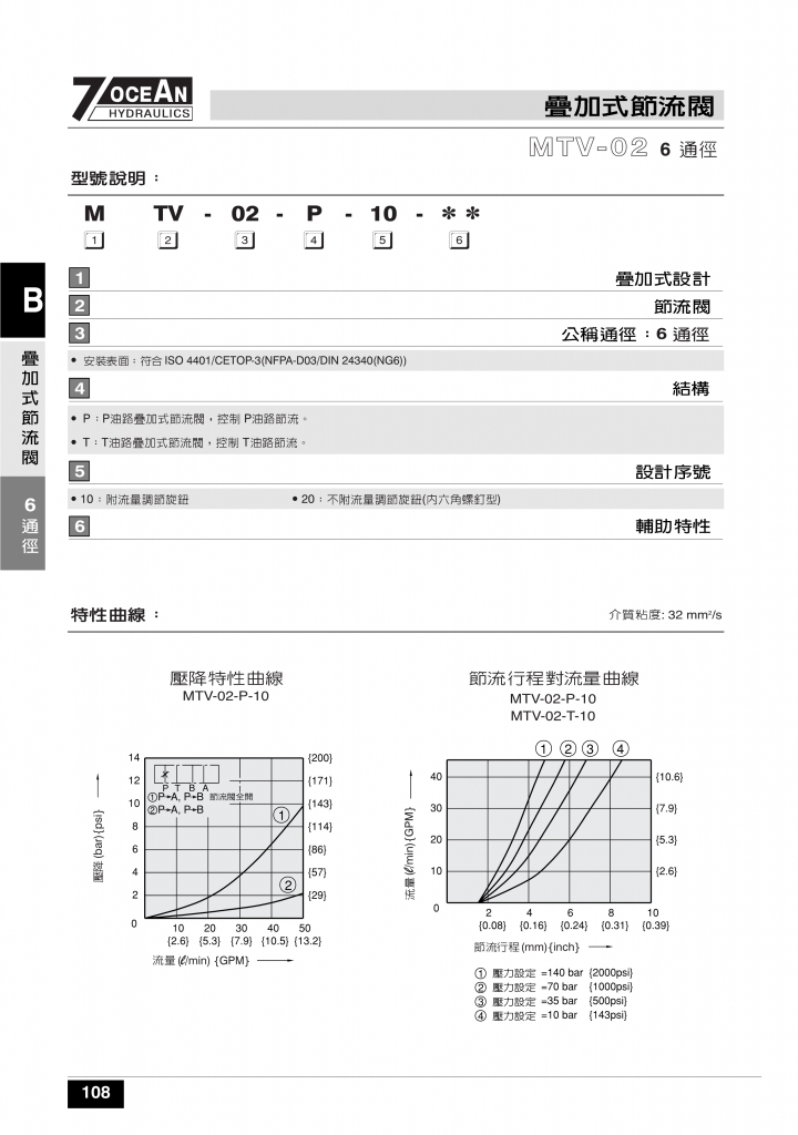 7OCEAN七洋疊加閥 MTC-02,03,04系列疊加式單向節(jié)流閥-SevenOcean七洋