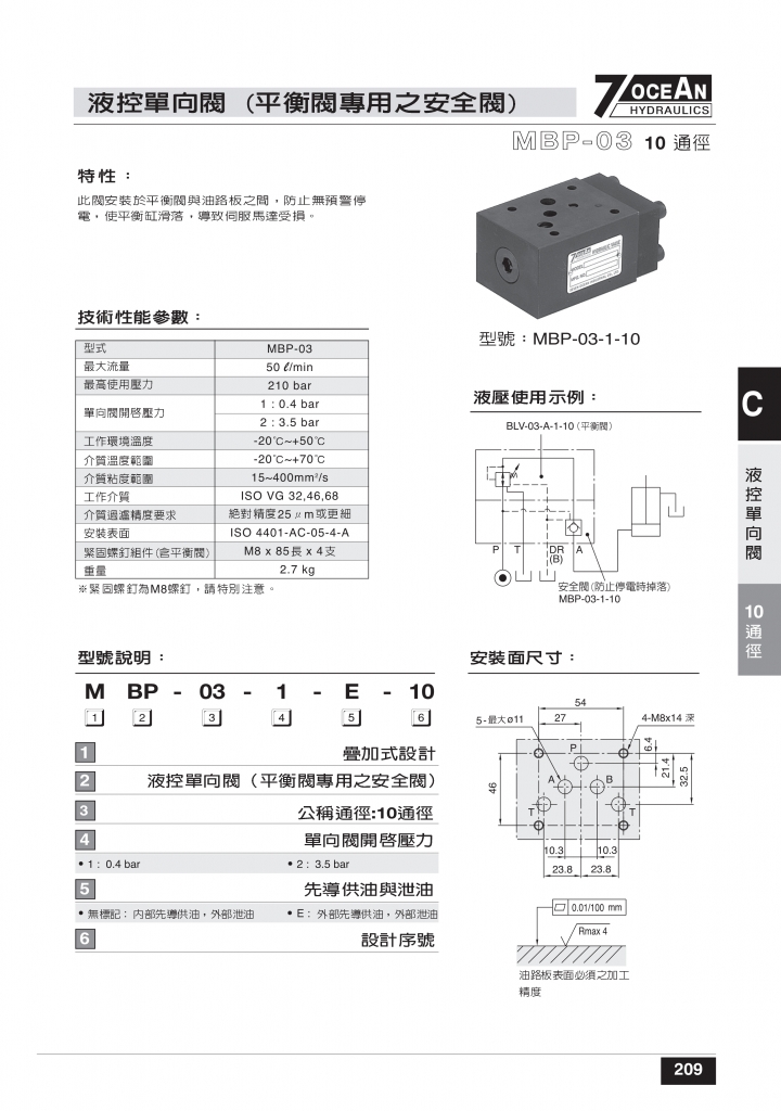 7OCEAN七洋疊加閥 MPC-02,03系列疊加式液控單向閥-SevenOcean七洋
