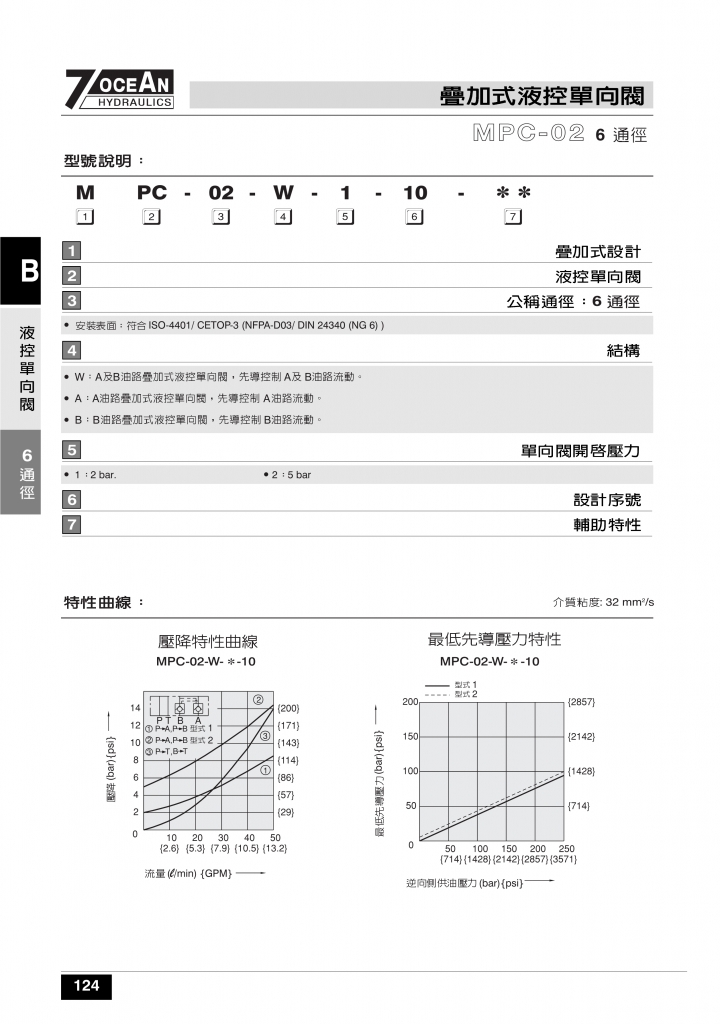 7OCEAN七洋疊加閥 MPC-02,03系列疊加式液控單向閥