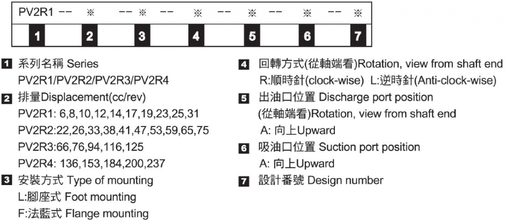 型式號碼 排量 運(yùn)轉(zhuǎn)速度 RPM 最高設(shè)定壓力 重量