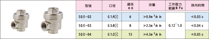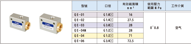 QE-01 , QE-02 , QE-03 , QE-04M , QE-04 , QE-06快速排氣閥