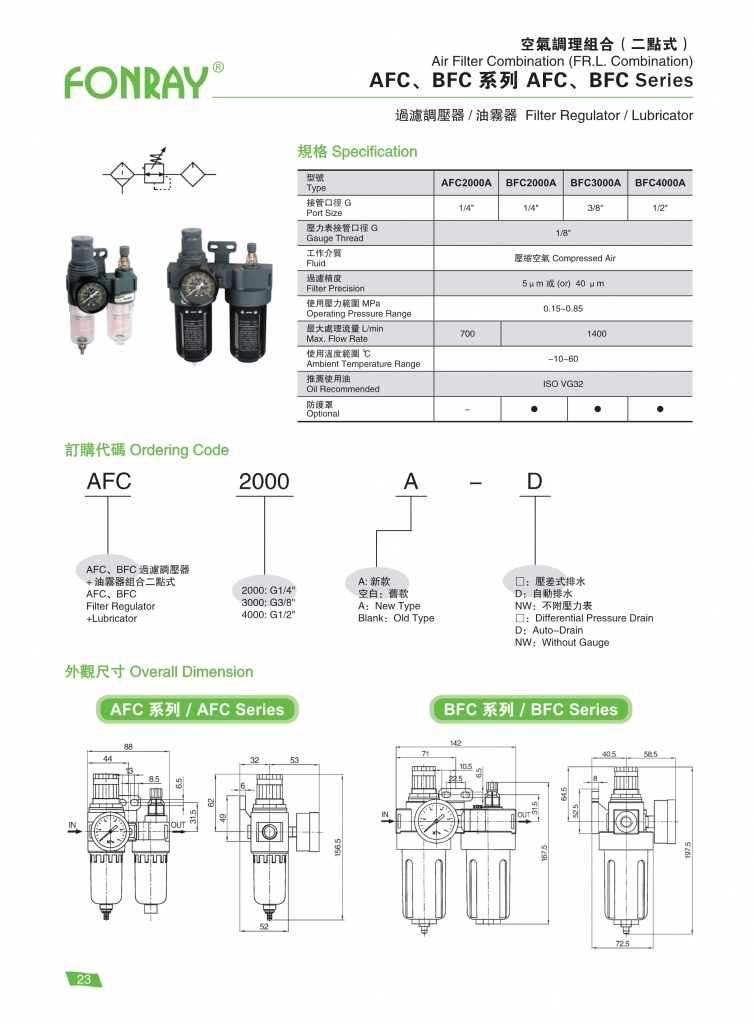 過濾調(diào)壓閥 + 油霧器 – AFC、BFC