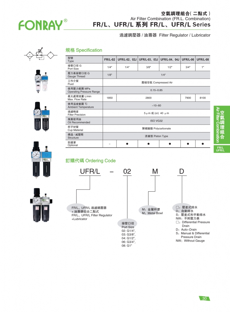 過濾調(diào)壓閥 + 油霧器 – FR / L、UFR / L