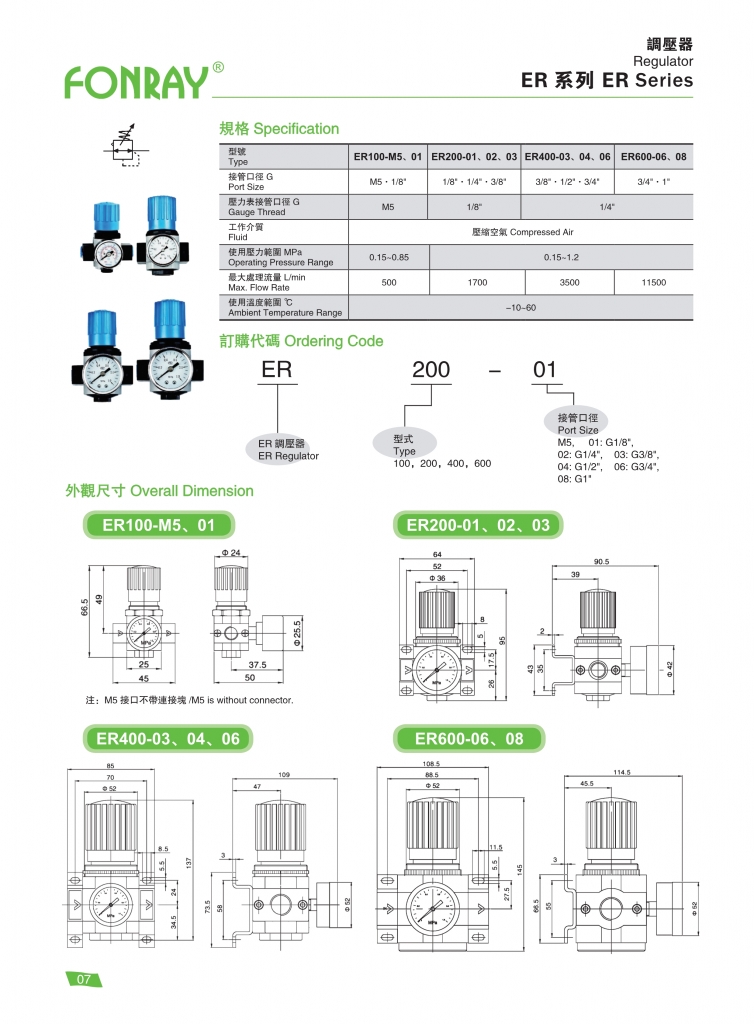 | ER100-M5、01 | M5、1/8″ | 500 | 0.15 ~ 0.85 |