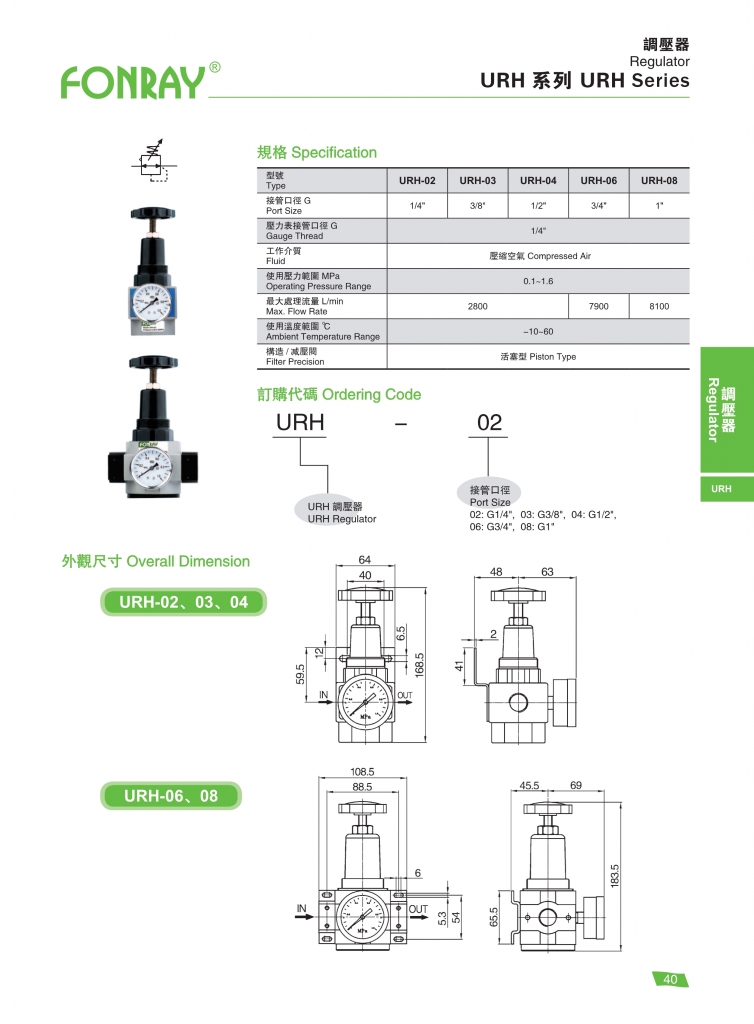 | URH-02 | 1/4″ | 2800 | 活塞型 | 0.1 ~ 1.6 |