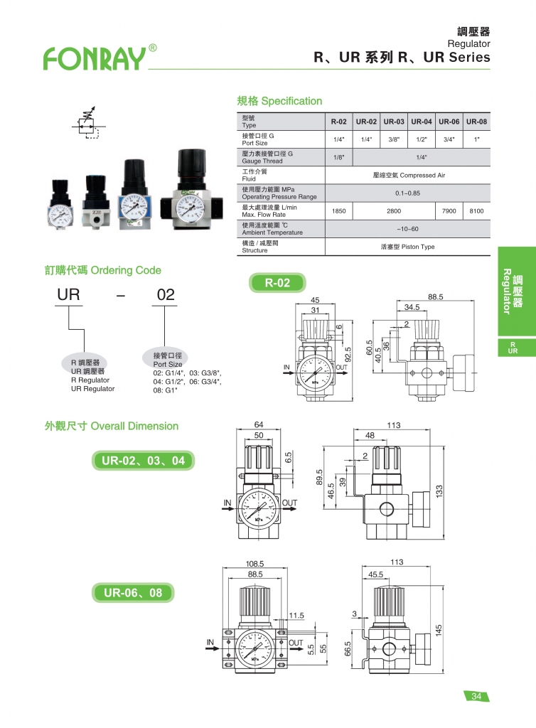 | R-02 | 1/4″ | 1850 | 活塞型 | 0.1 ~ 0.85 |