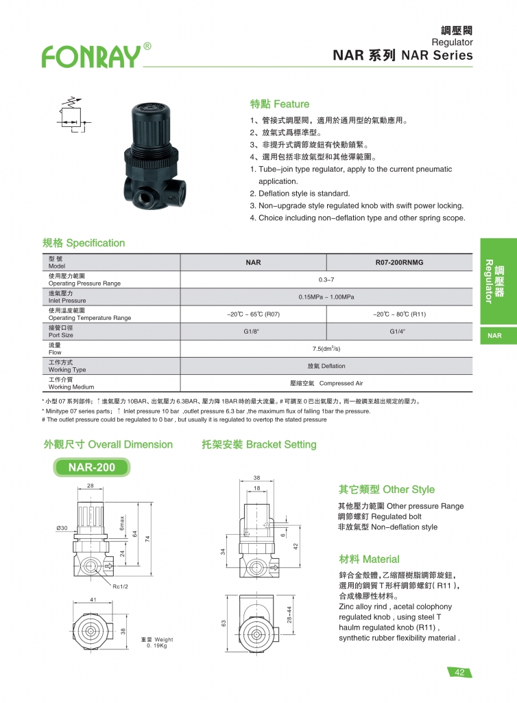 | NAR-200-R-S | 1/4″ | 0.15 ~ 1.0 |
