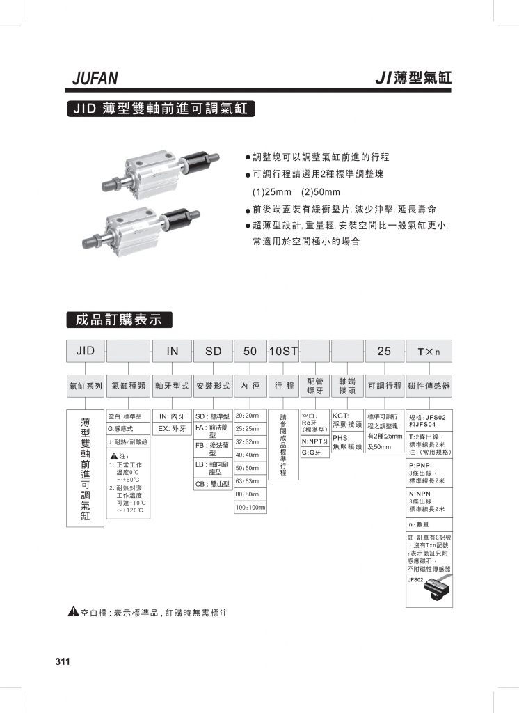 JIA薄型復(fù)動(dòng)氣缸JIB薄型雙軸氣缸JIC薄型雙軸氣缸 JID雙軸薄型前進(jìn)可調(diào)氣缸JIL薄型長(zhǎng)行程復(fù)動(dòng)氣缸