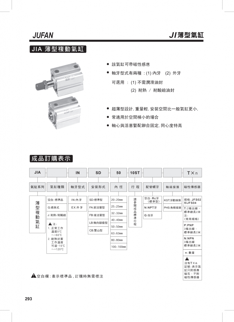 JUFAN君帆氣缸 JI系列薄型氣缸
