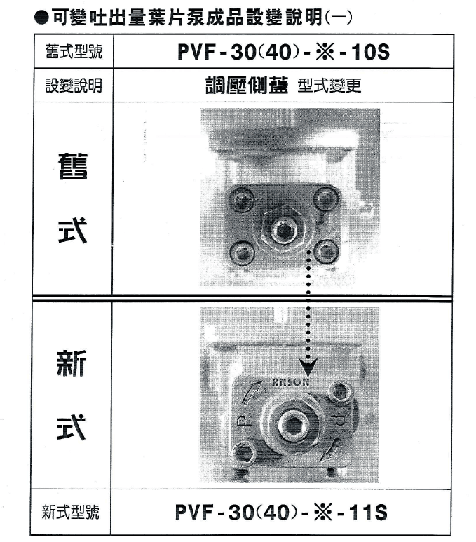 ANSON葉片泵PVF-30,PVF-40系列葉片泵成品設(shè)變說(shuō)明