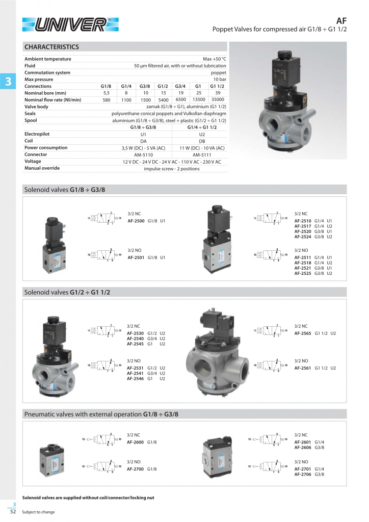 UNIVER電磁閥 SERIES AF 壓縮空氣提升閥3 / 2- G1 / 8“÷G1?”