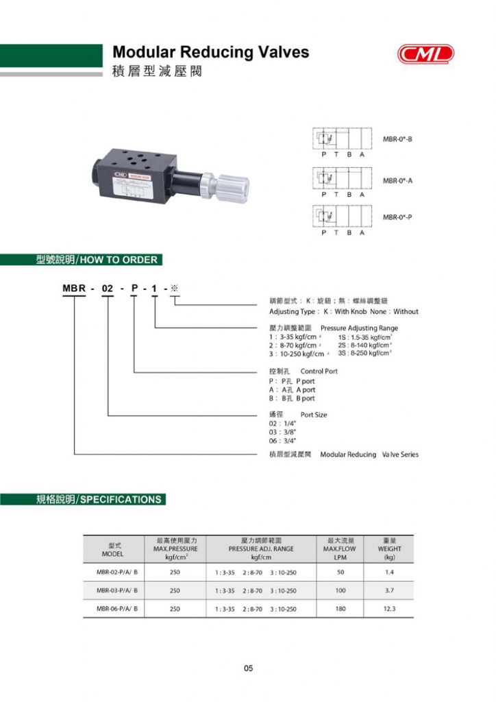 CML全懋疊加閥 積層式減壓閥 MBR-02,MBR-03系列